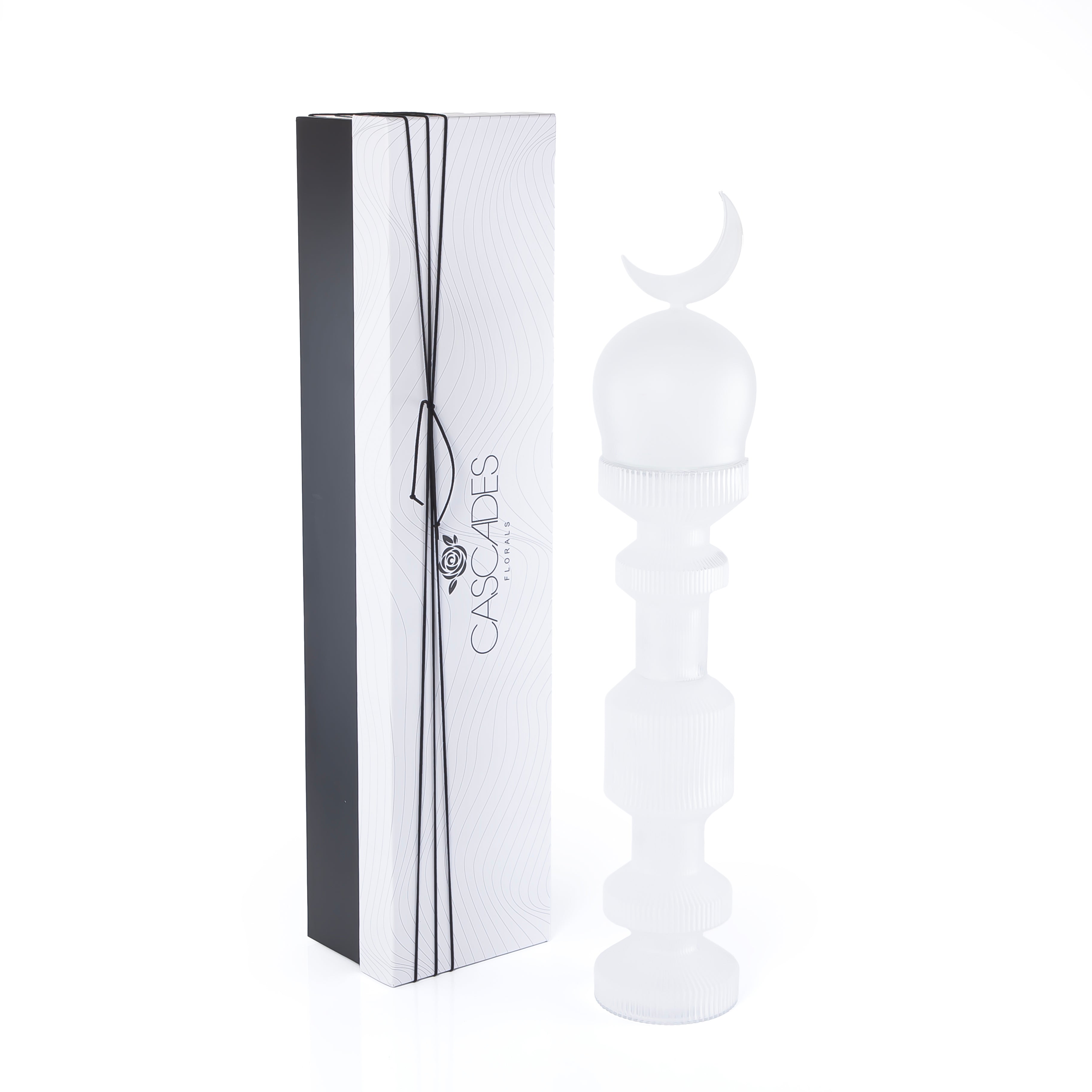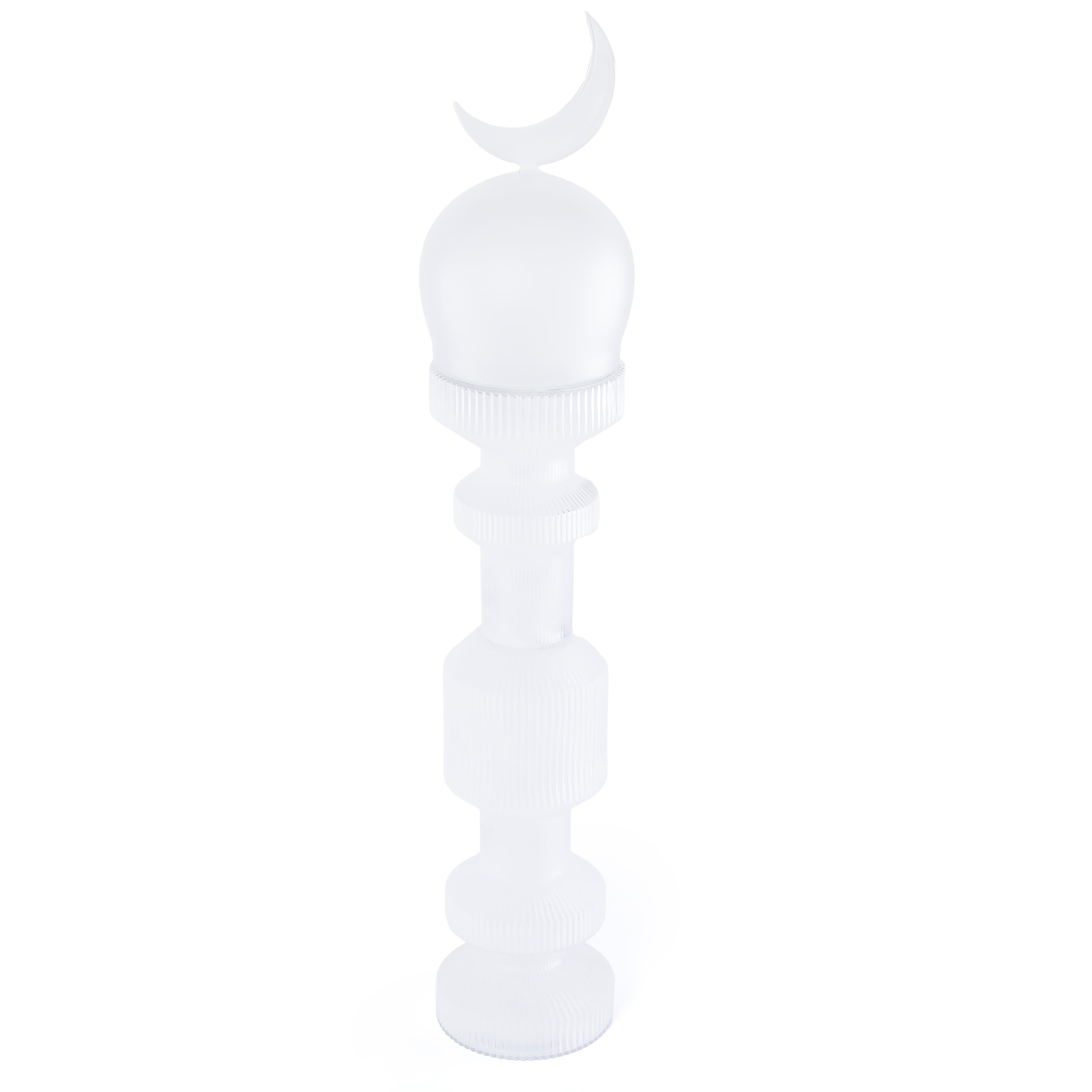 قطعة ديكور زجاجية حجم وسط علي شكل مأذنة مع بوكس هدايا - أبيض