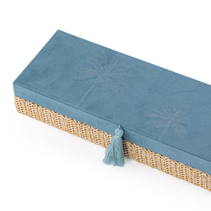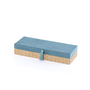 بوكس مجوهرات مستطيل صغير من الراتان مع غطاء – أزرق