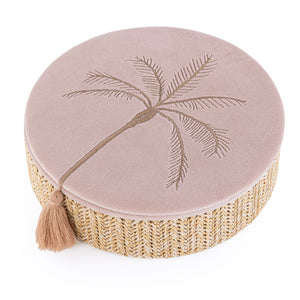 بوكس مجوهرات دائري صغير من الراتان مع غطاء – بيج