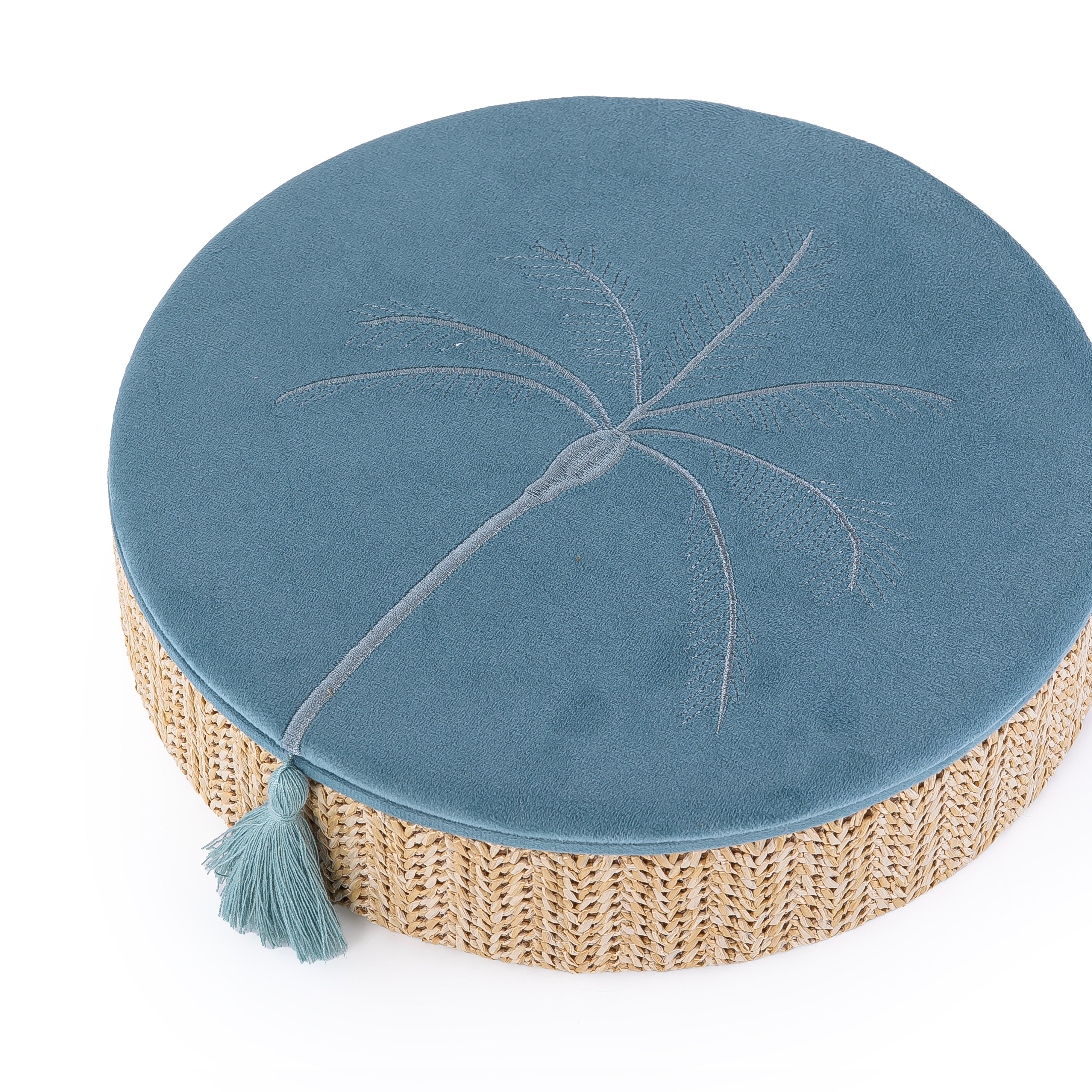 بوكس مجوهرات دائري كبير من الراتان مع غطاء – أزرق