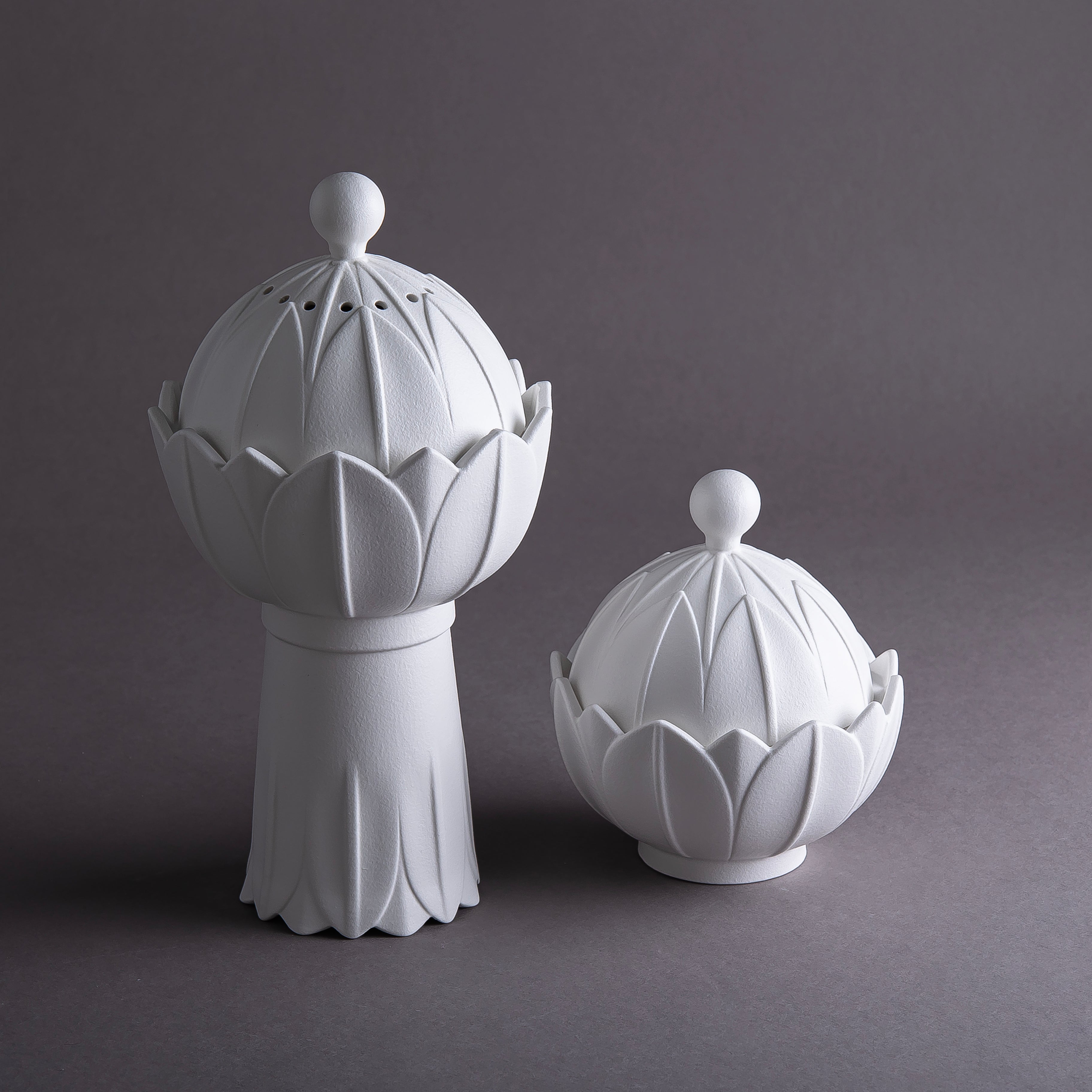 طقم مكون من مبخر و وعاء سيراميك مع بوكس هدايا - أبيض