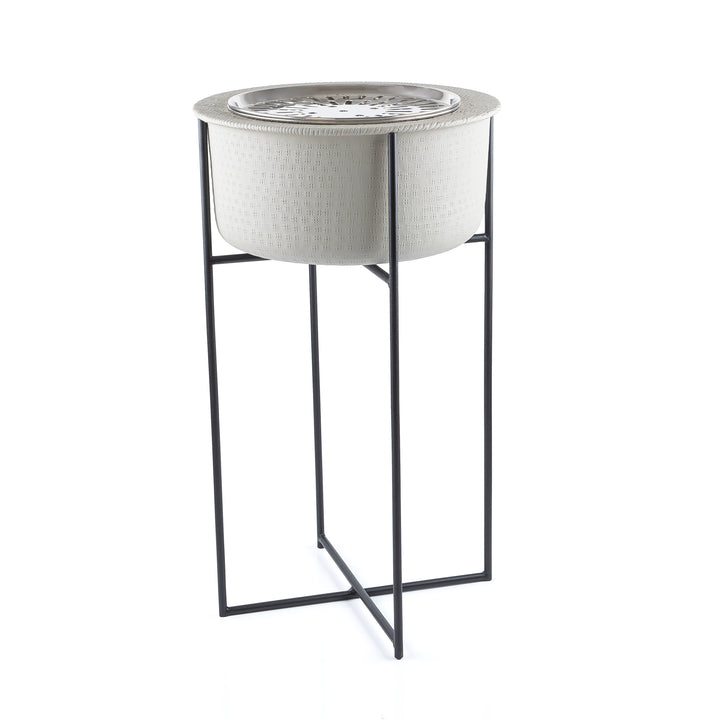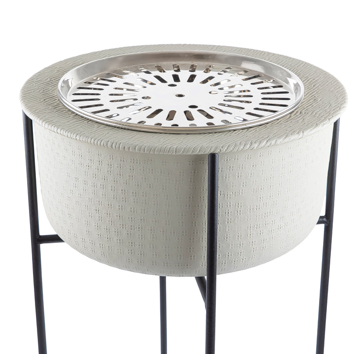 حافظي على دفئك في الليالي الباردة، ووفري إضاءة ناعمة وأجواء مريحة، باقتناء هذه الدوه المعدنية العملية و مثالية للاستخدام في الحديقة، بالاضافه الى استاند معدن ويمكن تنظيفها بسهولة بعد كل استخدام.