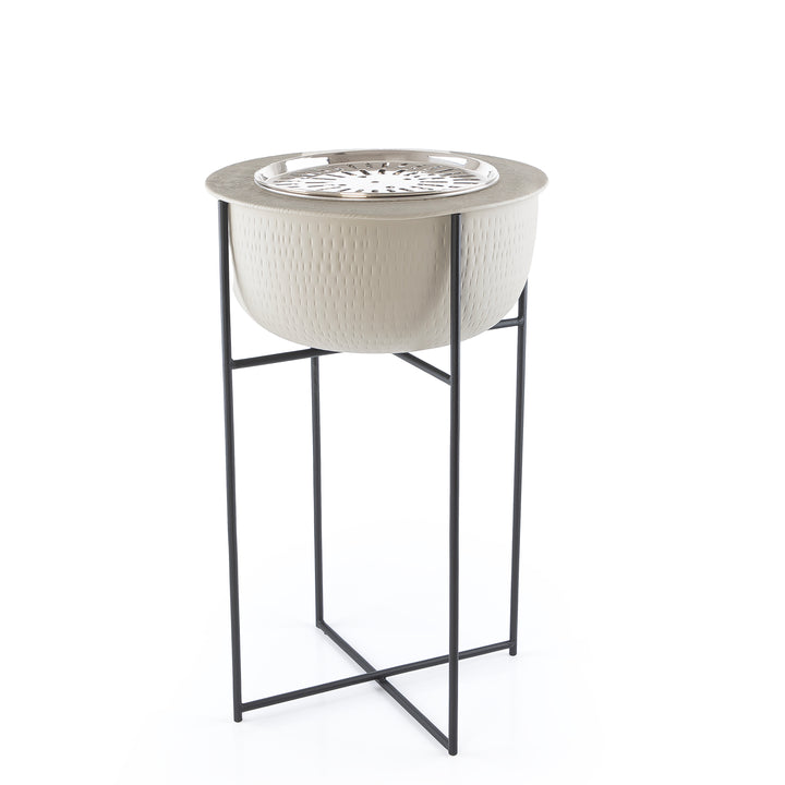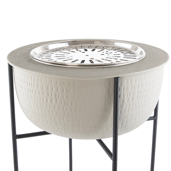 حافظي على دفئك في الليالي الباردة، ووفري إضاءة ناعمة وأجواء مريحة، باقتناء هذه الدوه المعدنية العملية و مثالية للاستخدام في الحديقة، بالاضافه الى استاند معدن ويمكن تنظيفها بسهولة بعد كل استخدام.