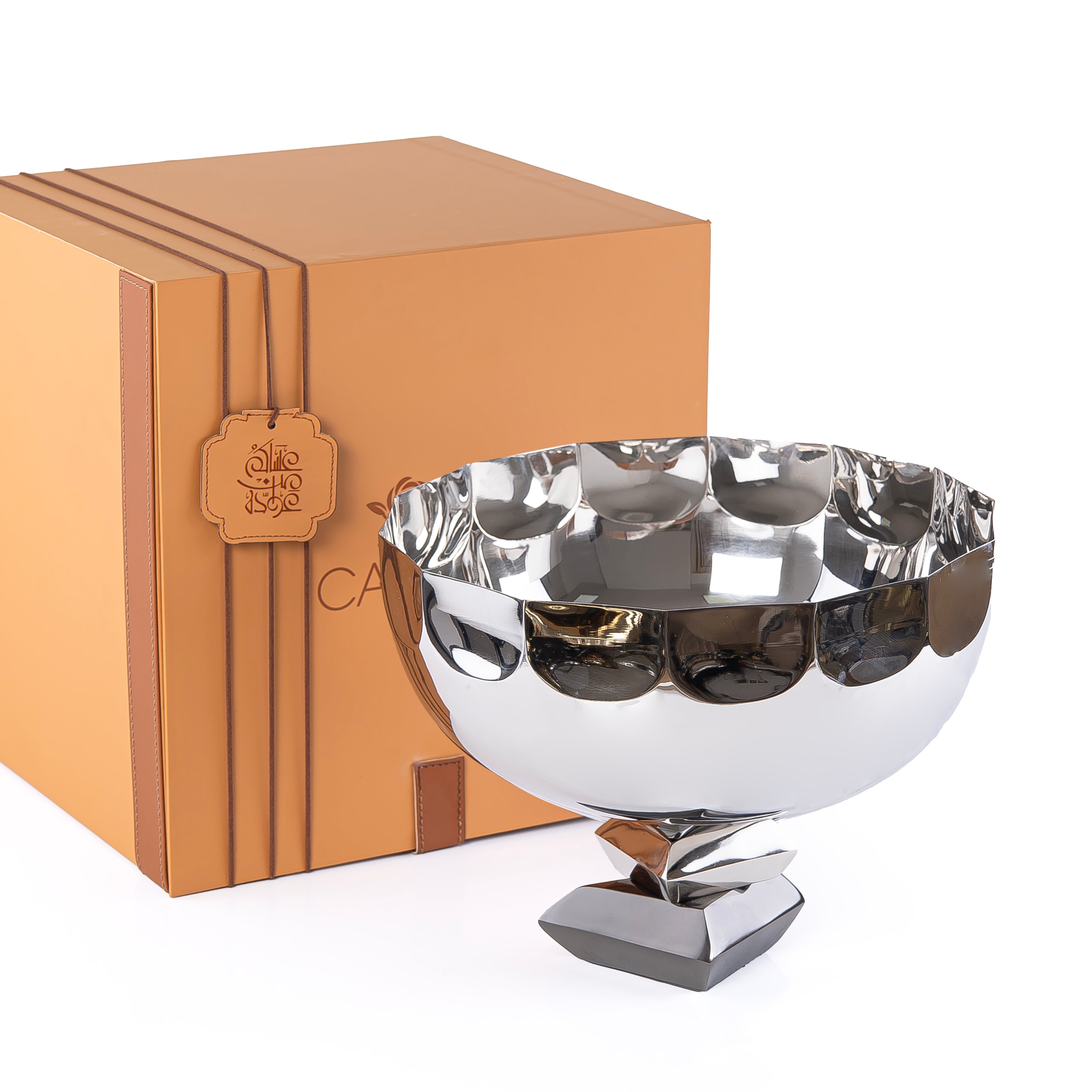 وعاء تقديم دائري معدن مع قاعدة مع بوكس هدايا - فضي