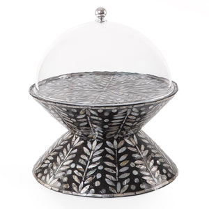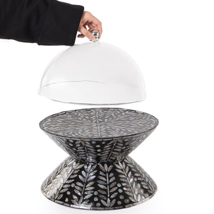 Chose the option: ستاند تقديم الكيك الدائري من الصدف وجهين مع غطاء أكليريك - أسود كبير