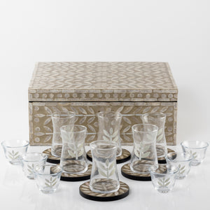 طقم صدف مكون من 12 قاعدة أكواب مع 6 أكواب للقهوة و 6 أكواب للشاي مع بوكس - رمادي