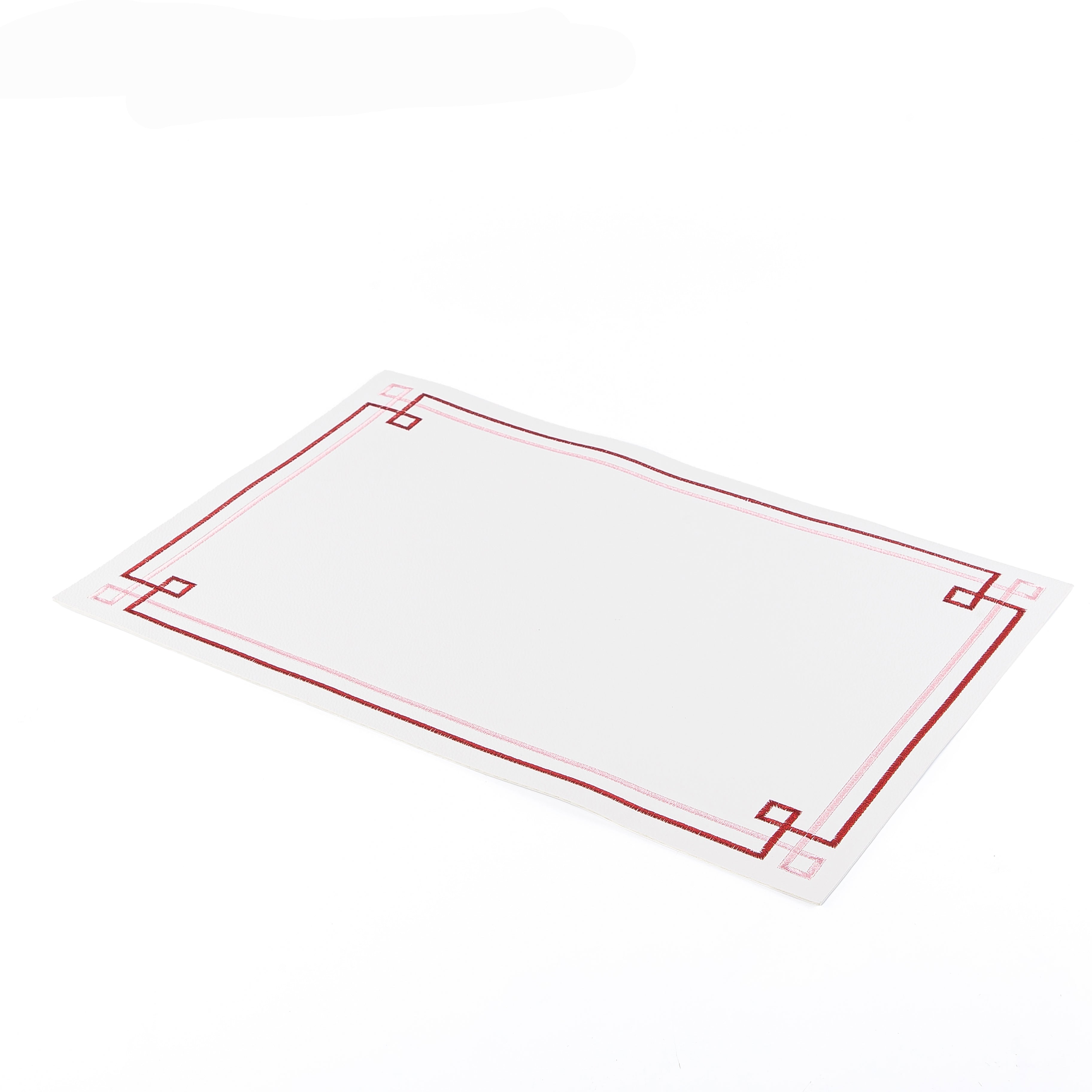 مفرش طاولة من الجلد الصناعي - لون أبيض مع الأحمر