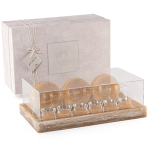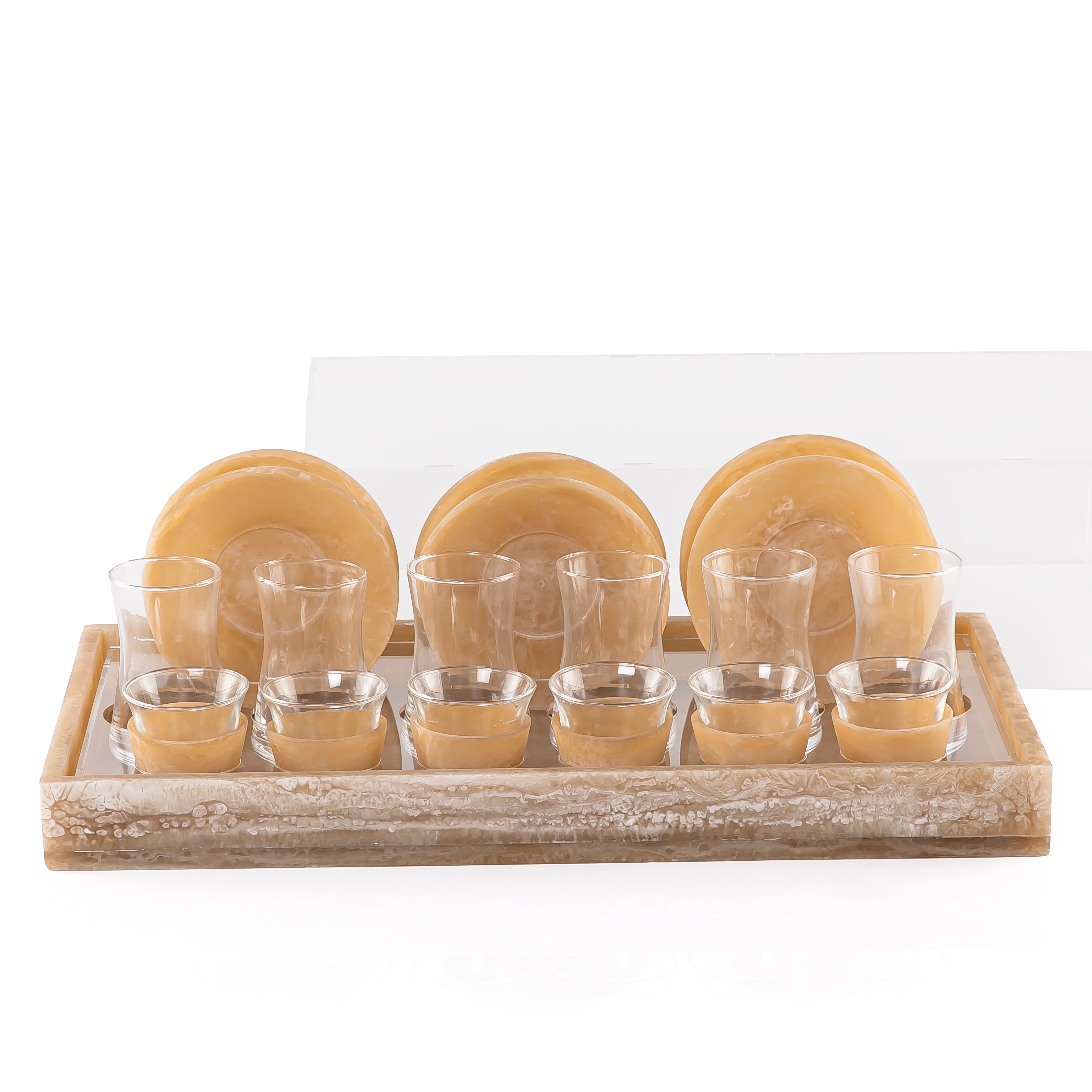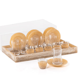 طقم مكون من 12 إستيكانات وفناجين قهوة مع الأطباق وبوكس هدايا - أصفر