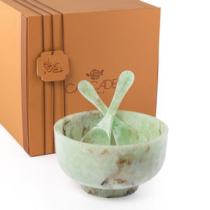 وعاء تقديم من الراتينج مع ملعقتين مع بوكس هدايا – أخضر