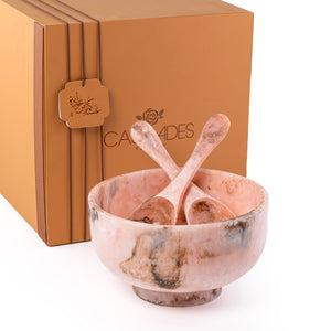 وعاء تقديم من الراتينج مع ملعقتين مع بوكس هدايا – وردي