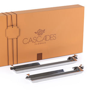 اختر الخيار: طقم مكون من 2 صينية معدن طويلة للتقديم مع بوكس هدايا - فضي & أسود