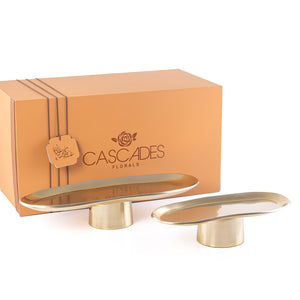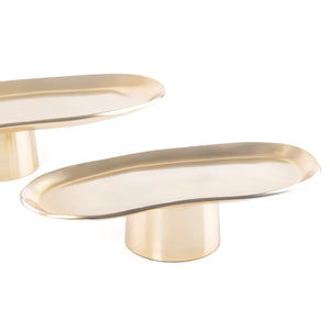 طقم 2 ستاندات تقديم بيضاوية من المعدن مع بوكس - ذهبي