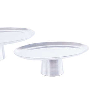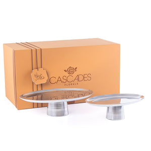 طقم 2 ستاندات تقديم بيضاوية من المعدن مع بوكس - فضي
