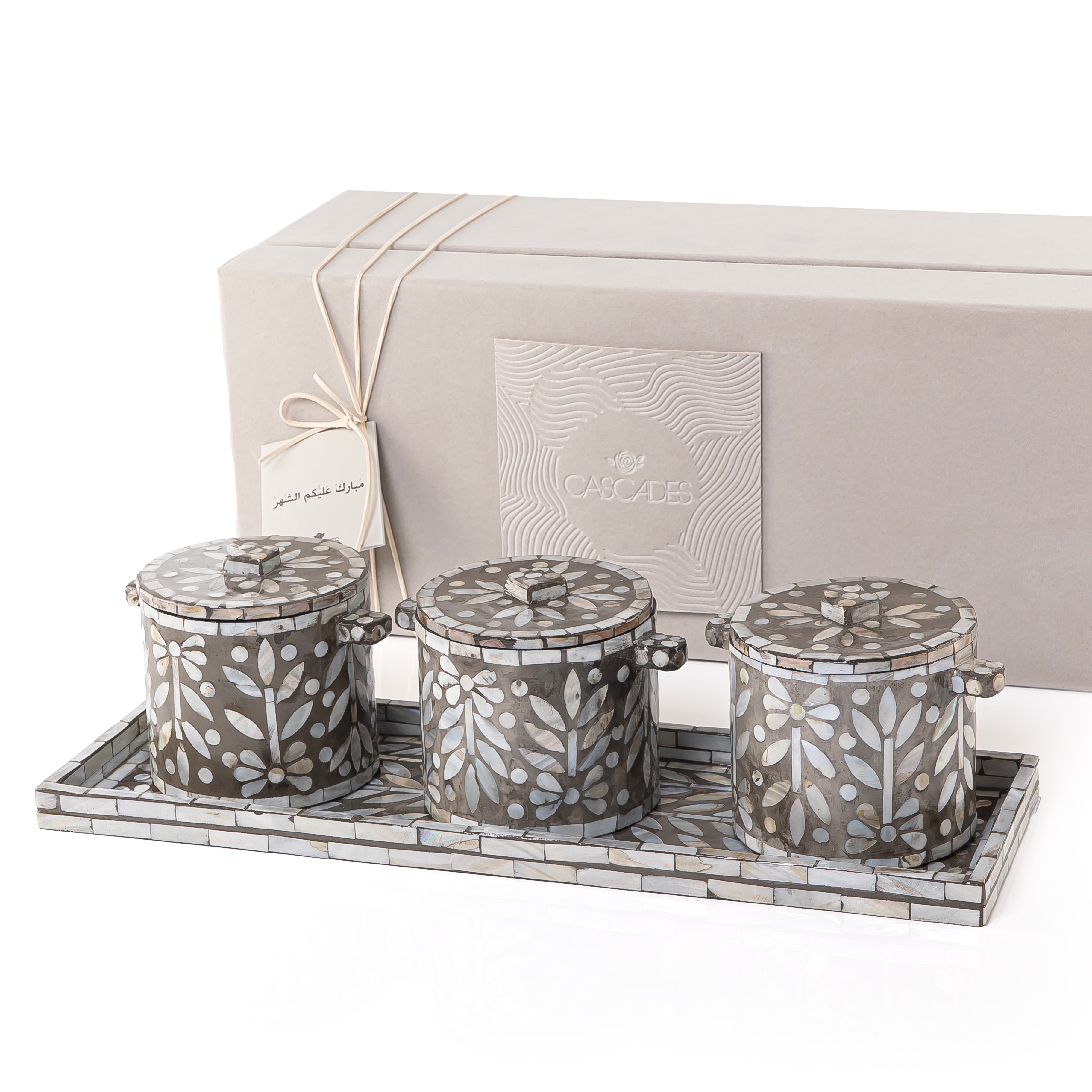 طقم من 3 جار + صينية من الصدف مع بوكس هدايا