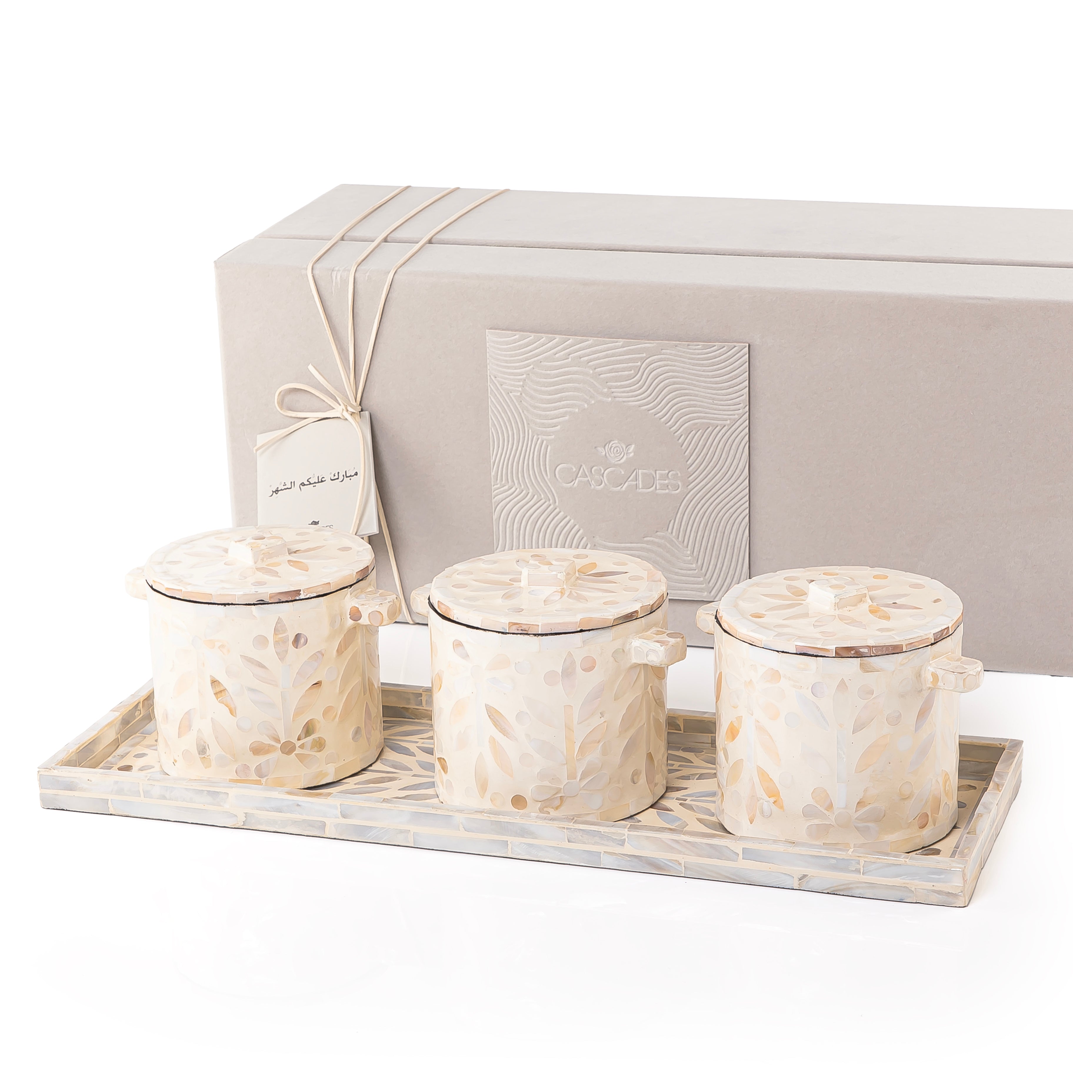 طقم من 3 جار + صينية من الصدف مع بوكس هدايا