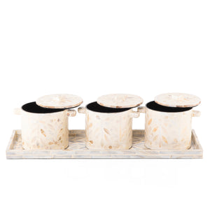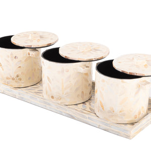 طقم من 3 جار + صينية من الصدف مع بوكس هدايا -كريمي