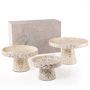 طقم من 3 ستاندات تقديم مع بوكس هدايا - كريمي