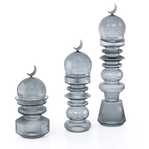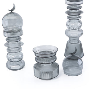 طقم زجاجي (2 قطعة ديكورعلى شكل مأذنة + وعاء للتمر ) مع بوكس هدايا - رمادي