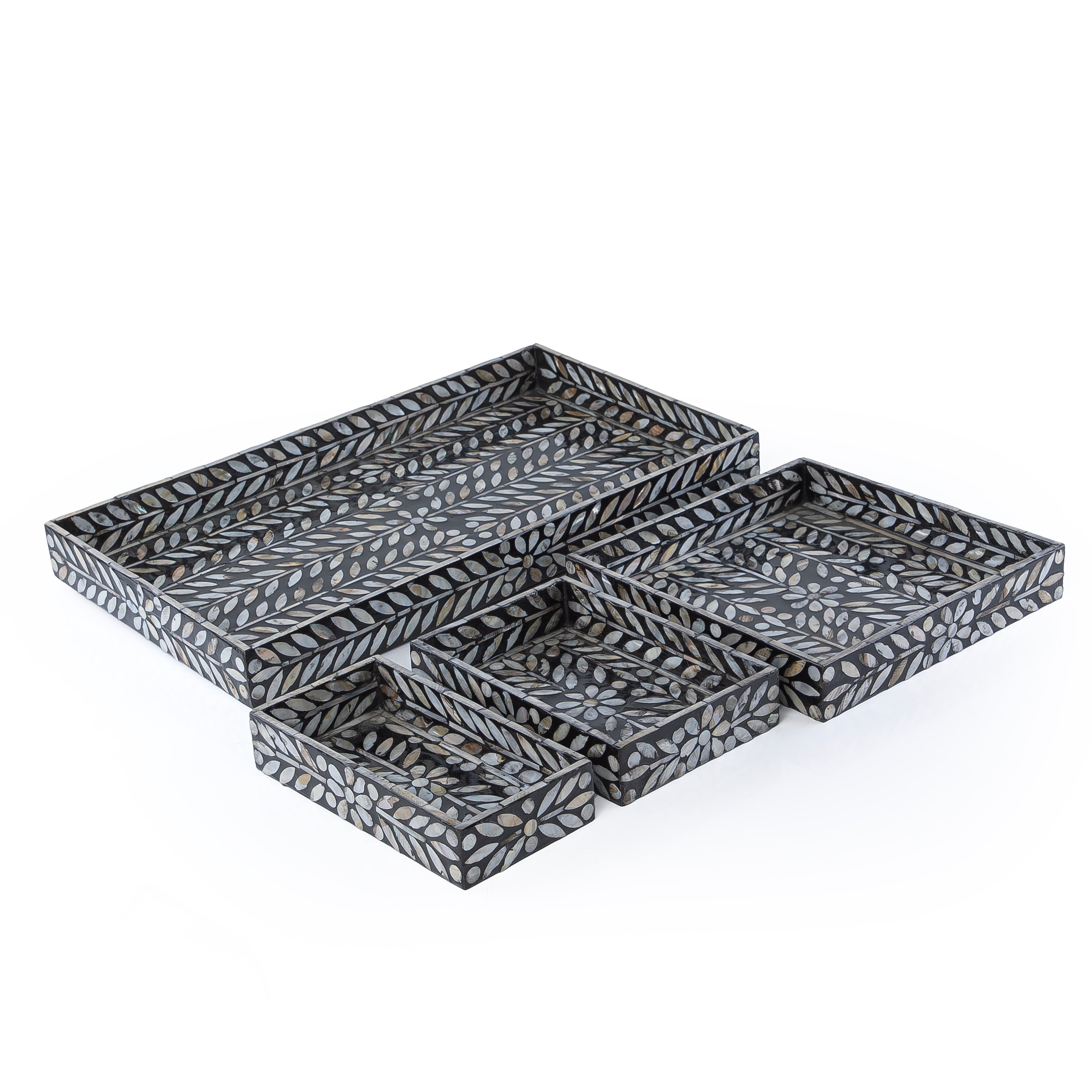 ارتقِ بتنظيم منزلك مع طقم صواني الصدف الانيق هذا. يتميز بأربعة أحجام متدرجة باللون الاسود الأنيق، كل قطعة تُبرز اللمسة النهائية اللامعة والمتلألئة التي تُميز عرق اللؤلؤ الفاخر. مثالية لعرض المجوهرات، أو تنظيم مستلزمات المكتب، أو تقديم المرطبات، تجمع هذه الصواني متعددة الاستخدامات بين العملية والجماليات الراقية. تضمن الاختلافات الطبيعية في سطح كل صينية اللؤلؤي جمال كل طقم بشكل فريد. إضافة مثالية للديكورات الداخلية العصرية أو التقليدية التي تبحث عن فخامة غير مبالغ فيها.