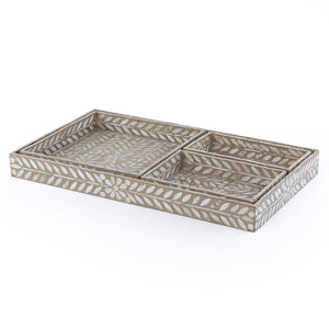 ارتقِ بتنظيم منزلك مع طقم صواني الصدف الأنيق هذا. يتميز بأربعة أحجام متدرجة باللون الكريمي الأنيق، كل قطعة تُبرز اللمسة النهائية اللامعة والمتلألئة التي تُميز عرق اللؤلؤ الفاخر. مثالية لعرض المجوهرات، أو تنظيم مستلزمات المكتب، أو تقديم المرطبات، تجمع هذه الصواني متعددة الاستخدامات بين العملية والجماليات الراقية. تضمن الاختلافات الطبيعية في سطح كل صينية اللؤلؤي جمال كل طقم بشكل فريد. إضافة مثالية للديكورات الداخلية العصرية أو التقليدية التي تبحث عن فخامة غير مبالغ فيها.