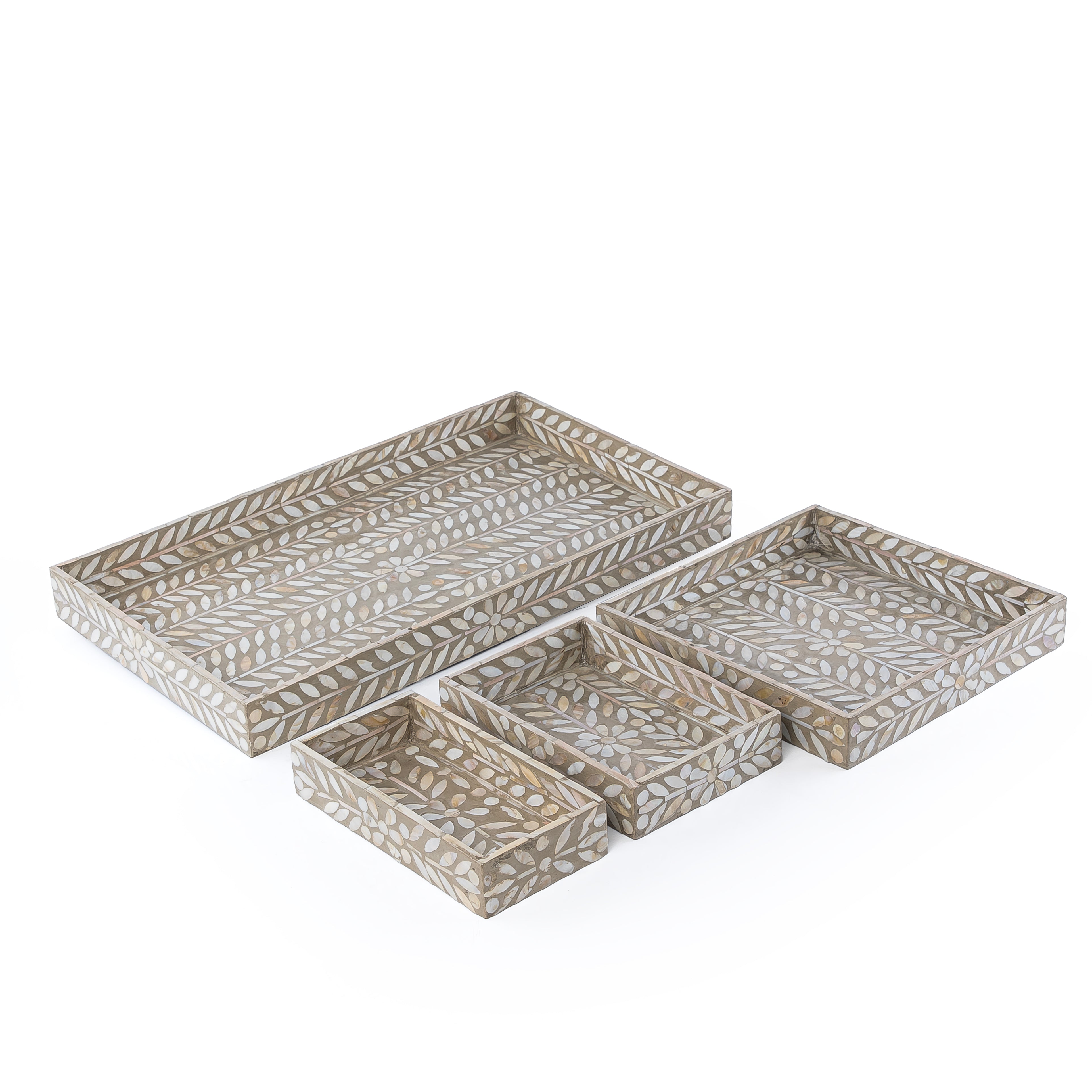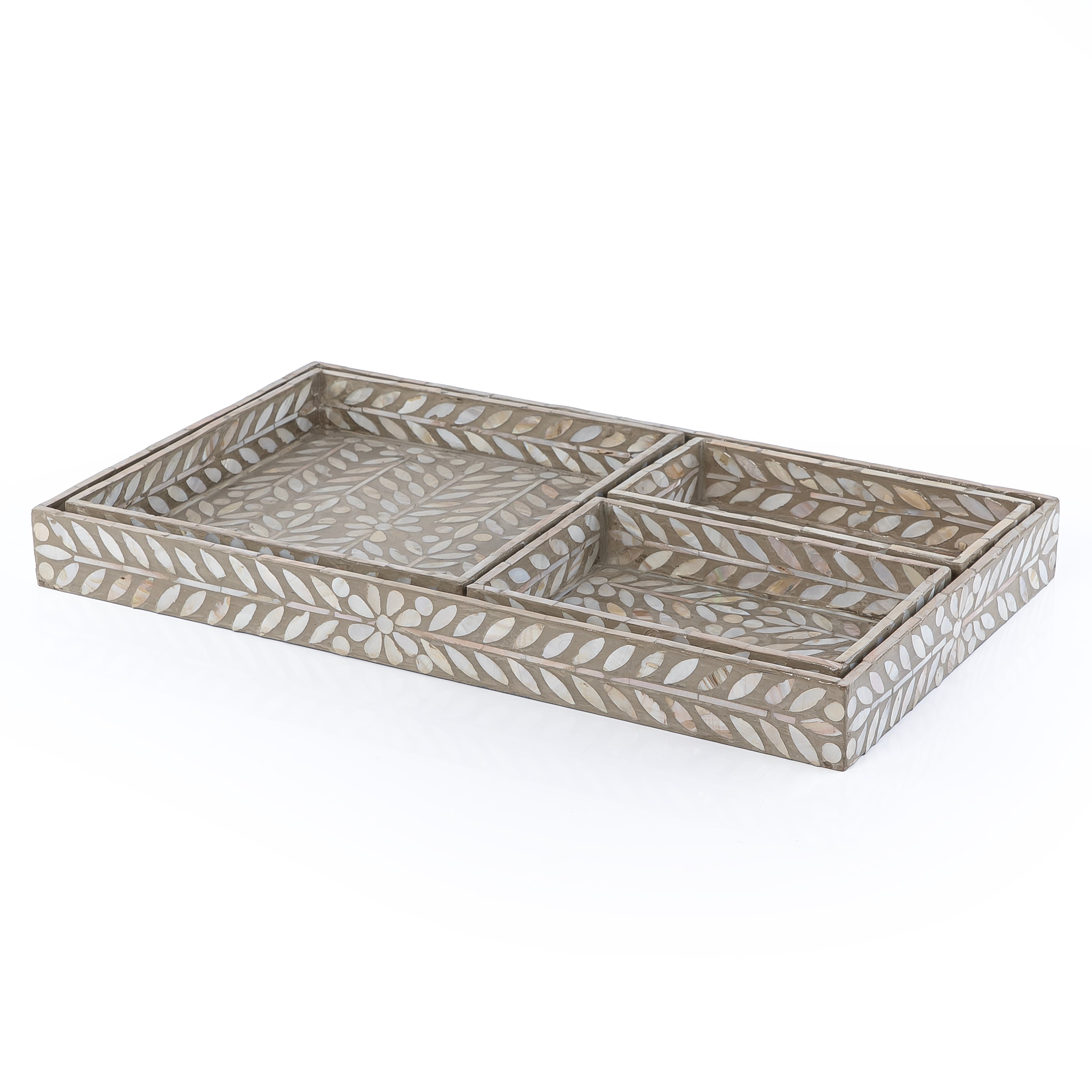 طقم صدف مكون من 4 صواني بأحجام مختلفة - رمادي