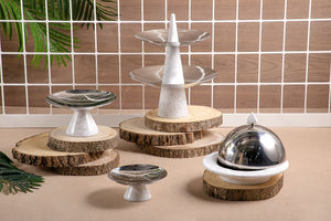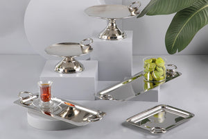 طبق تقديممن الإستانلس ستيل - فضي صغير