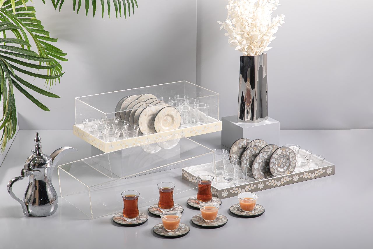 صينية تقديم مع مقبض بلمسة لامعة