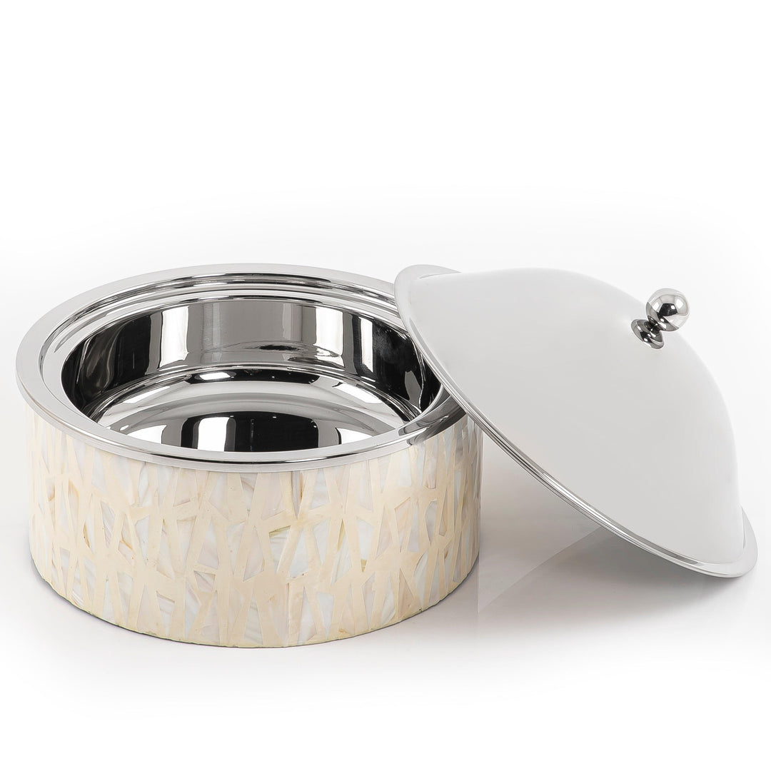 استمتعي بطعامك دافئا لمدة ساعات مع حافظة الطعام الاستانلس بقاعدة مصنوعه من الصدف الأنيق للحصول على مظهر كلاسيكي وراقي