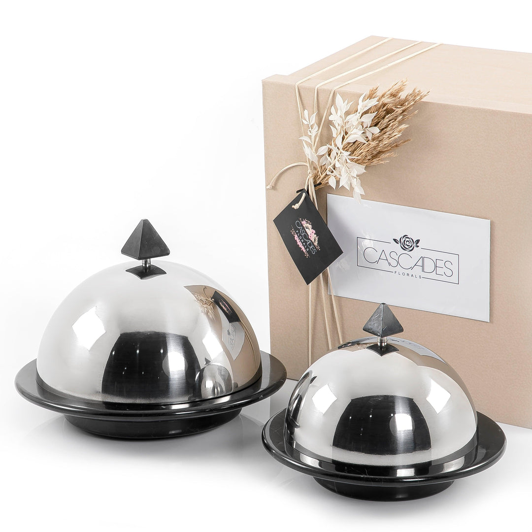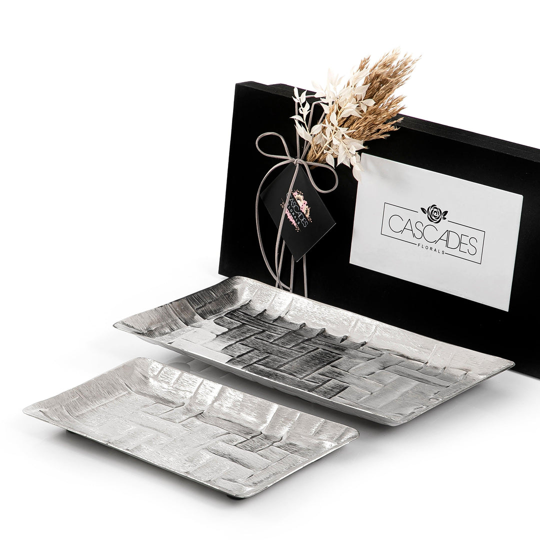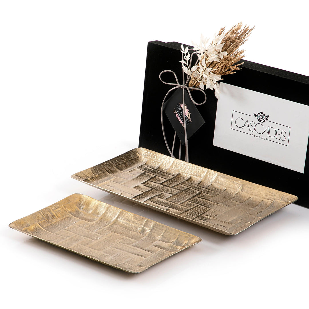 طقم مبخر معدني مع صينية وصندوق بخور وملقط مع بوكس هدايا
