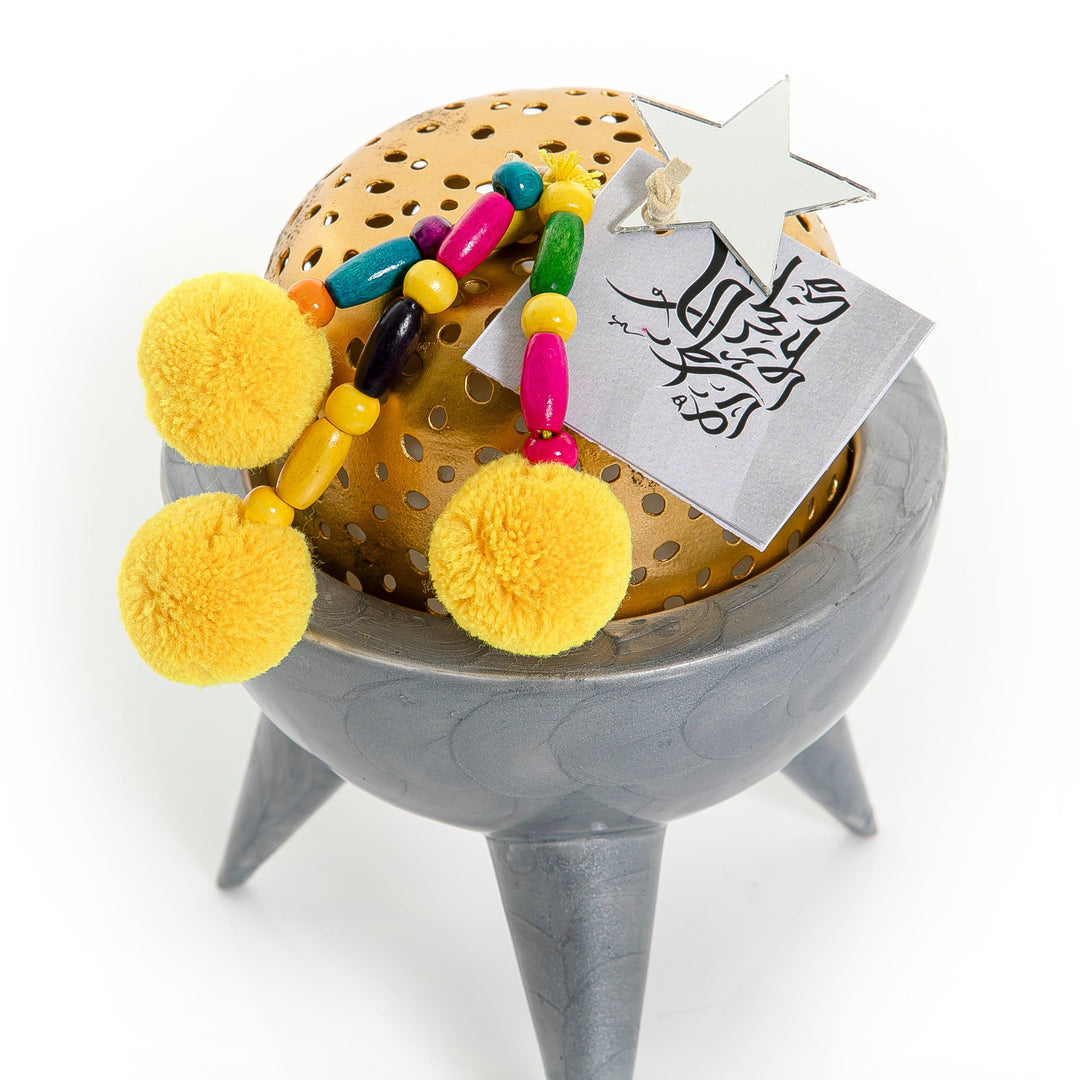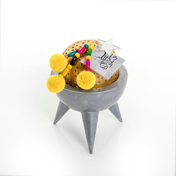 علبة قرقيعان بتصميم إبداعي وانيق مصنوعه من المعدن المتين مزينه بشرايط ملونه بالاضافه الى كرت ( ملاحظه العلب من غير تعبئه )